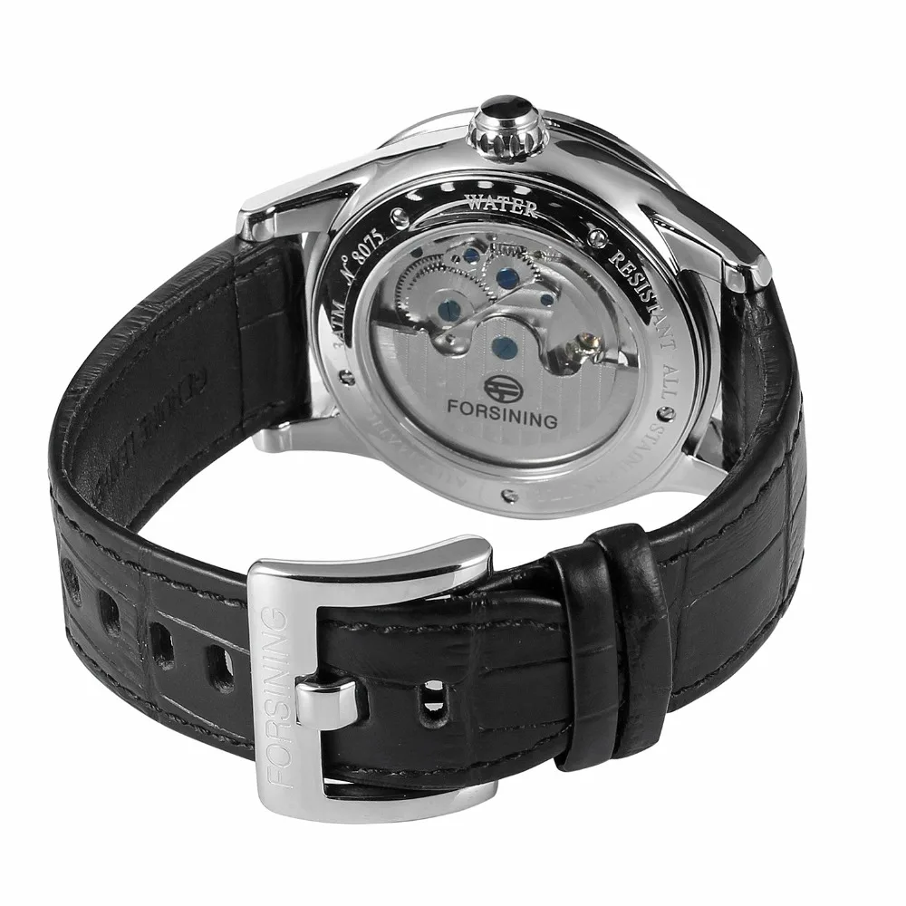 Special Promo FORSINING Men's Top Brand Watches Automatic Luxury Stainless Steel Case Genuine Leather Strap Men C