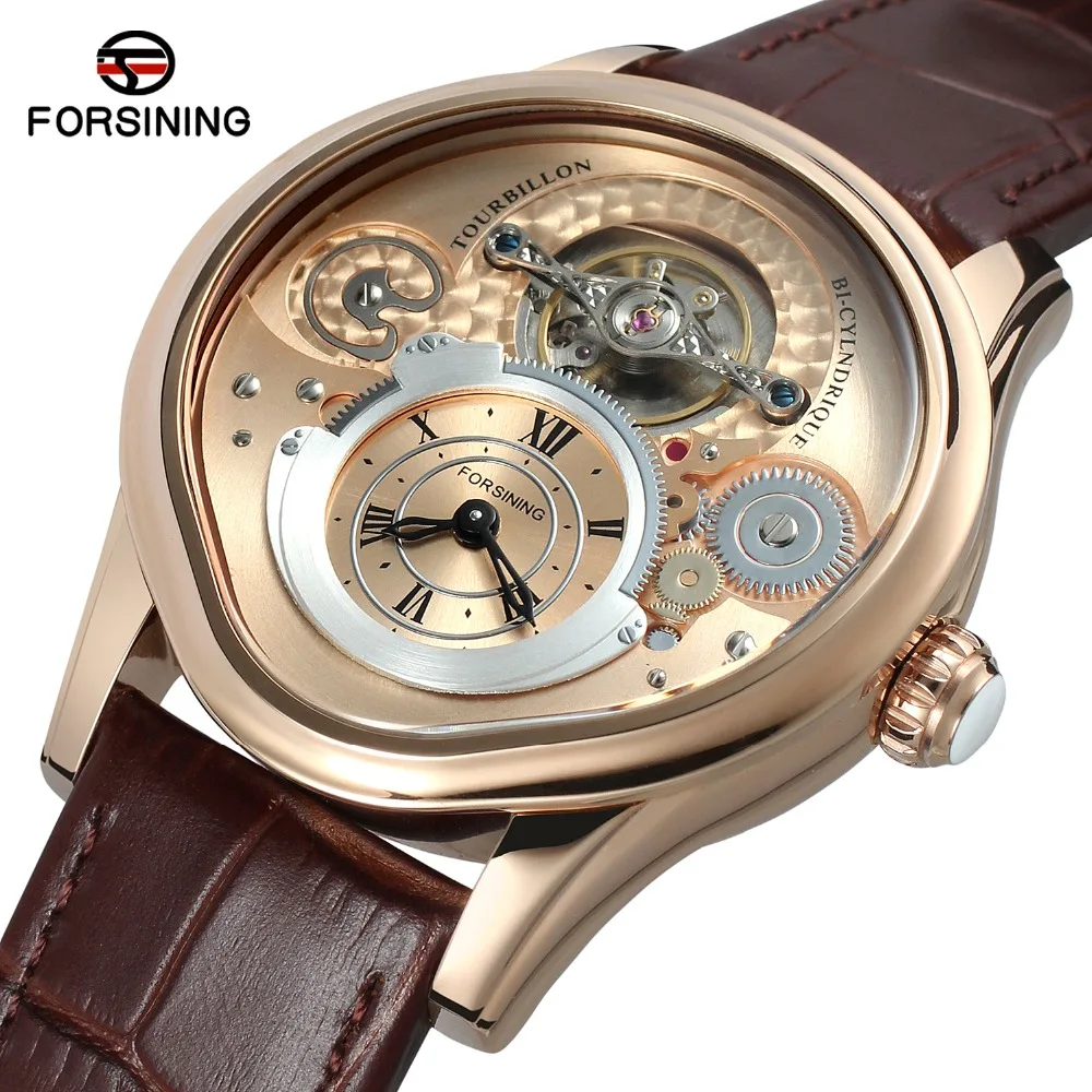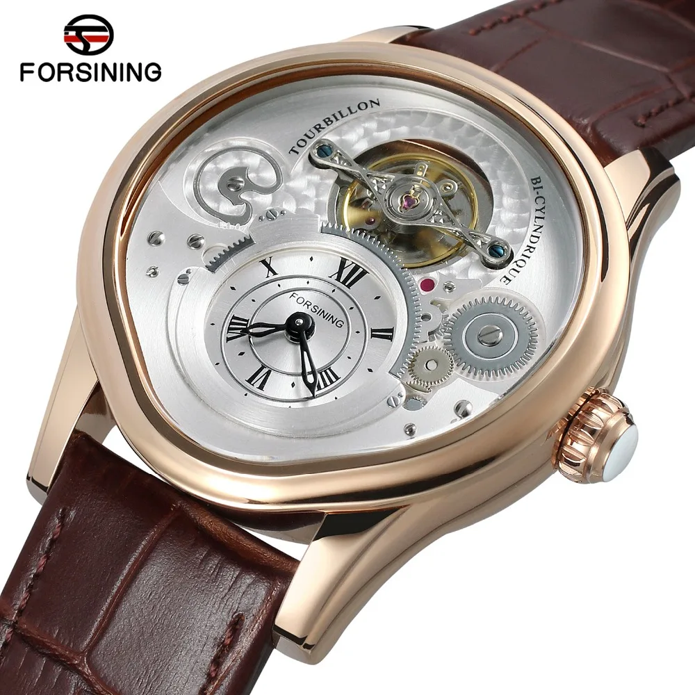 - Forsining Men's Watch Luxury Brand Rose Gold Automatic Movt Brown Genuine Leather Wrist watch Color White FSG9407M3R1 : Click here